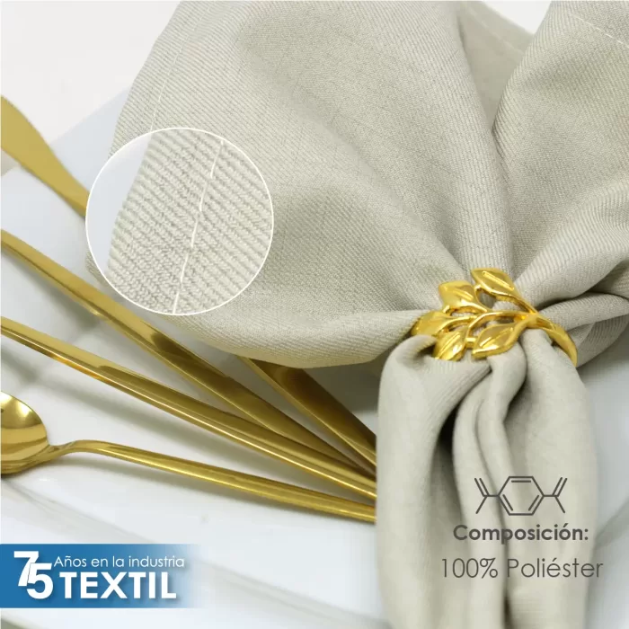 Servilleta de lino, 100% poliéster, 45 x 45 cm, ideal para eventos. Resistente y disponible en varios colores. Envíos a toda la república.