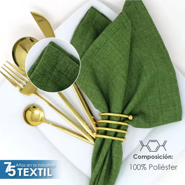 Servilleta de lino, 100% poliéster, 45 x 45 cm, ideal para eventos. Resistente y disponible en varios colores. Envíos a toda la república.