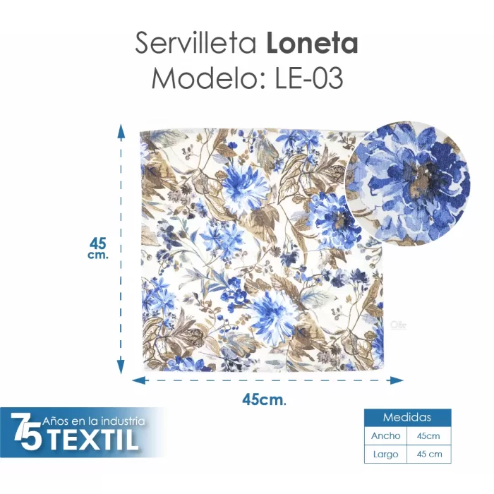 Dale un toque distintivo a tu mesa con nuestras servilletas de loneta estampada, listas para entrega inmediata, ideales para cualquier evento o uso diario. Fabricadas en una resistente mezcla de 50% algodón y 50% poliéster, estas servilletas de 45×45 cm ofrecen la suavidad del algodón y la durabilidad del poliéster. Cada pieza está diseñada para brindar estilo y funcionalidad, con más de 10 estampados exclusivos que combinan con diferentes ambientes y decoraciones. Perfectas para cenas especiales, reuniones familiares o simplemente para añadir color y diseño a tu mesa.