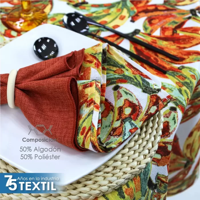 Dale un toque distintivo a tu mesa con nuestras servilletas de loneta estampada, listas para entrega inmediata, ideales para cualquier evento o uso diario. Fabricadas en una resistente mezcla de 50% algodón y 50% poliéster, estas servilletas de 45×45 cm ofrecen la suavidad del algodón y la durabilidad del poliéster. Cada pieza está diseñada para brindar estilo y funcionalidad, con más de 10 estampados exclusivos que combinan con diferentes ambientes y decoraciones. Perfectas para cenas especiales, reuniones familiares o simplemente para añadir color y diseño a tu mesa.