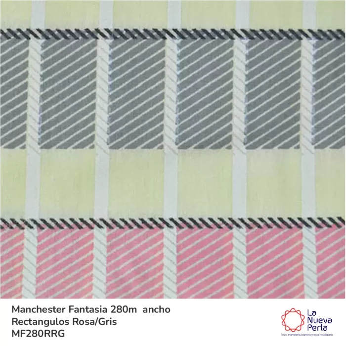 Tela Manchester 150 hilos 280 cm 50% algodón 50% Poliéster Rectángulos Rosa Gris
