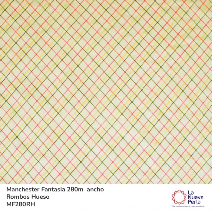 Tela Manchester 150 hilos 280 cm 50% algodón 50% Poliéster Rombos Hueso