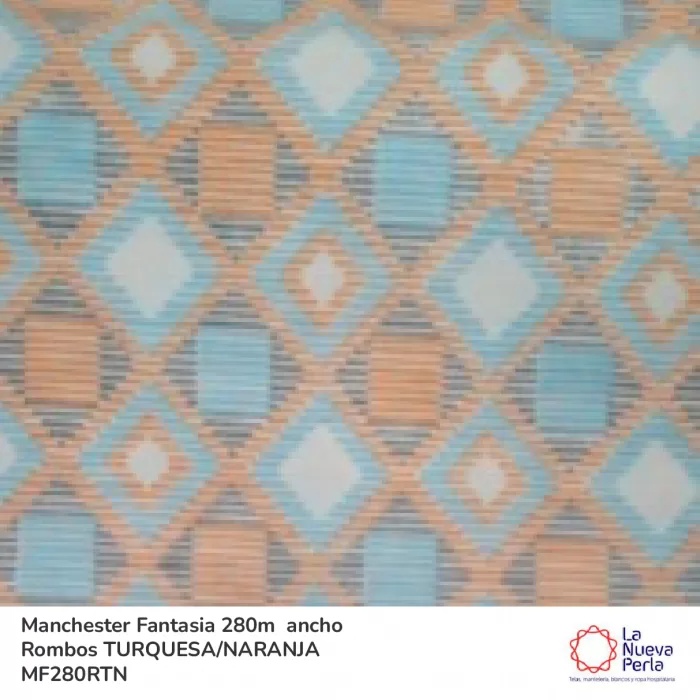Tela Manchester 150 hilos 280 cm 50% algodón 50% Poliéster Rombos Naranja Turquesa