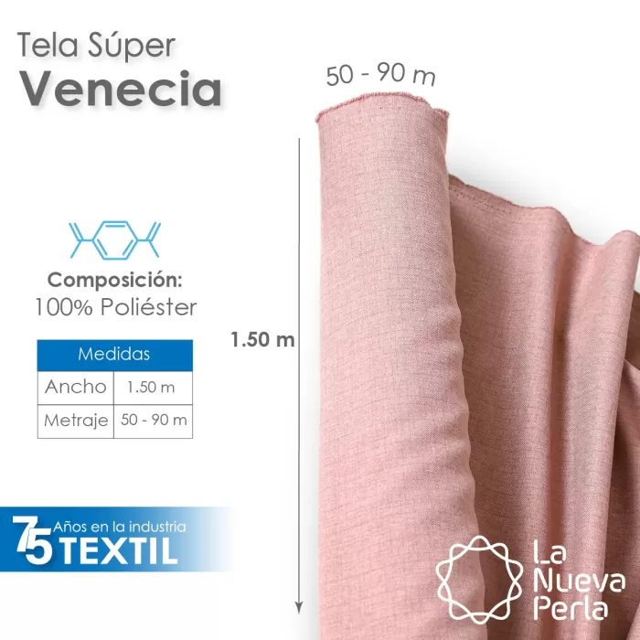 Tela para mantelería Lino Venecia: 1.50 metros de ancho, 100% poliéster, amplia variedad de colores, resistente y no despinta. Ideal para mayoristas.