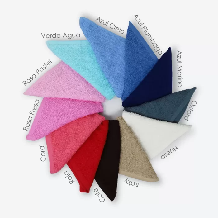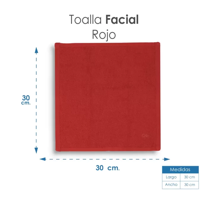 Toalla facial de algodón 100%, 30×30 cm, disponible en varios colores. No destiñe ni encoge.