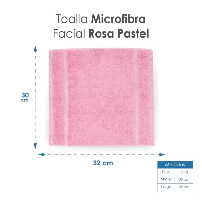 Toalla Facial Microfibra 30X30 Cm Rosa Pastel *AGOTADO TEMPORALMENTE*