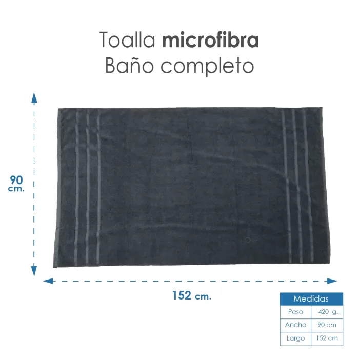 Toalla Microfibra Baño Completo 90X152 Color Gris Oxford