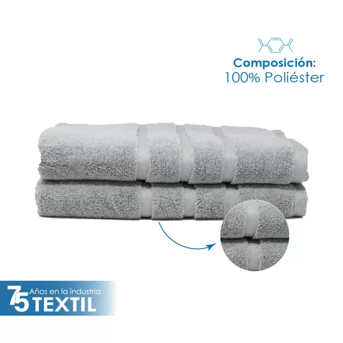 Toalla de microfibra de alta absorción, fabricada con una mezcla de poliéster y poliamida.