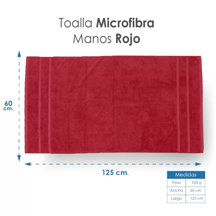 Toalla Microfibra Manos 60X125 Color Rojo