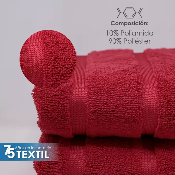 Toalla de microfibra de alta absorción, fabricada con una mezcla de poliéster y poliamida.