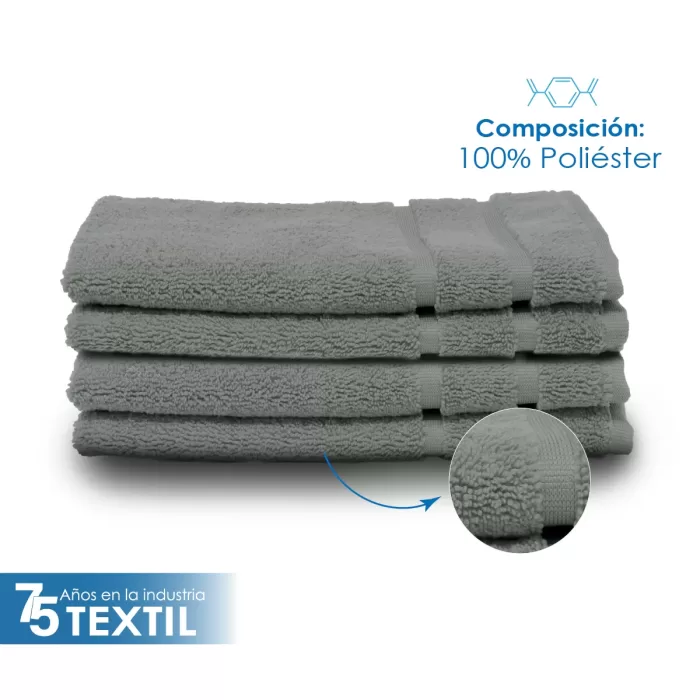 Toalla de microfibra de alta absorción, fabricada con una mezcla de poliéster y poliamida.