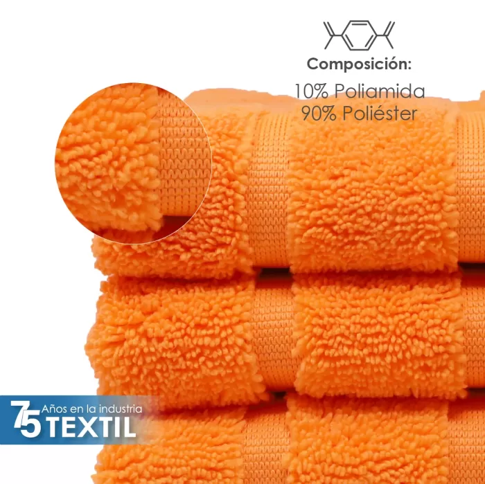 Toalla de microfibra de alta absorción, fabricada con una mezcla de poliéster y poliamida.