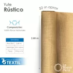 El yute rústico está disponible en su color natural, lo que permite su uso en múltiples contextos decorativos y funcionales. Con anchos de 1.30 y 2.80 metros, y presentada en rollos de 50 metros, esta tela se adapta fácilmente a proyectos de diferentes escalas y necesidades.